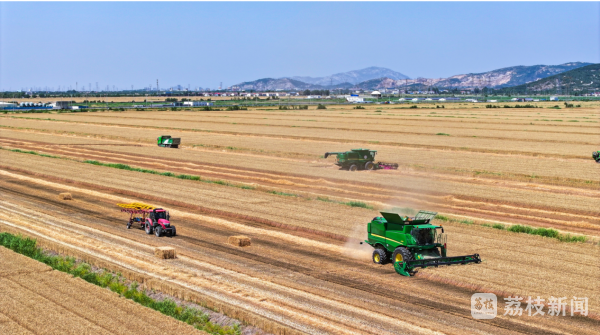 “三夏”时节,在连云港市海州区,岗埠农场王卫生产区里收割机穿梭割麦,云台农场秸秆拾捡机与打捆一体机轰鸣联动,新坝镇麦田里锋利的割台精准“吞入”成熟麦秆……海州区统筹农机调度、强化精准服务,以科技赋能为引擎高效推进“三夏”作业。