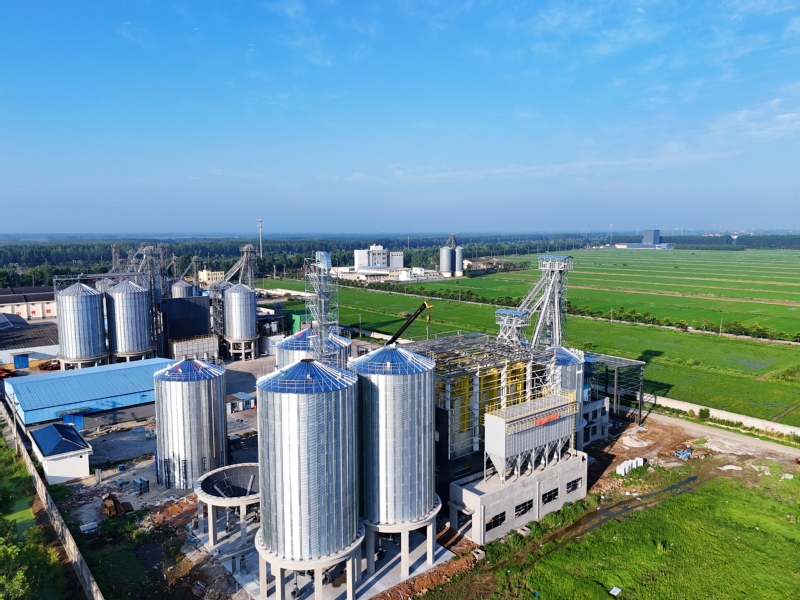 7月17日,在位于连云港市海州区的江苏农垦岗埠农场,施工单位抢抓晴好天气,加紧推进1200吨粮食智能烘干仓建设。该烘干仓采用5G+烘干机物联网技术,可通过手机、电脑等登录物联网App实现操作烘干线、粮库设备。徐卫 李想 摄 (视觉江苏网供图)