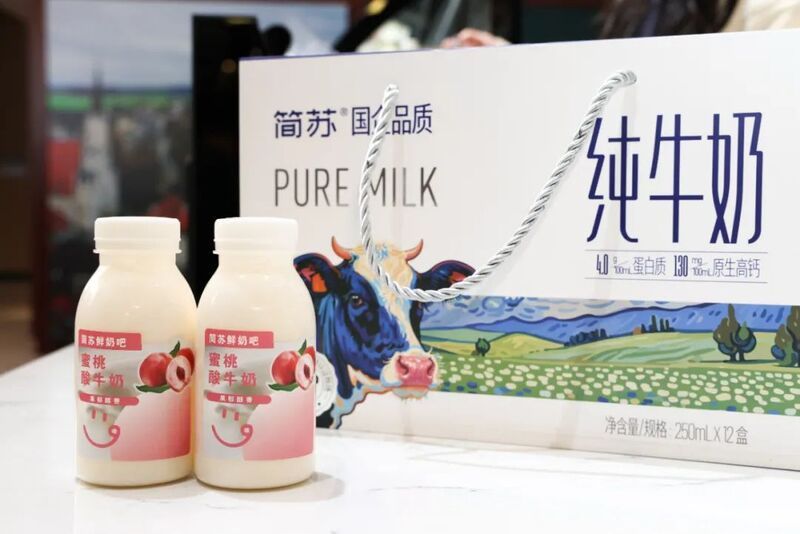 “简苏”牛奶以国企品质为基石,以天然营养为核心,凭借“国企自有牧场+极致纯净配方”构建差异化竞争优势。其中,“简苏”4.0纯牛奶成为江苏农垦首批获“苏垦优品”品牌授权准入的产品。线下开设“鲜奶吧”门店,销售现酿酸奶、冰激凌等产品,为消费者带来全新体验。积极参加东海水晶市场农产品集市、工业博览中心展会、海州农贸市场农业大集等商贸活动,让消费者零距离接触品牌。同时,还与中山精品酒店嘉年华超市等渠道建立良好合作关系,实现较高复购率,并与康济大药房、顺丰等开展联合营销,拓展线下体验场景。线上利用新媒体平台优势,开设抖音、京东等店铺直播带货,与《快乐向前冲》等热门IP跨界联动,打造多个销售成功案例。此外,还开设微信视频号进行直播,不断拓展线上销售渠道。