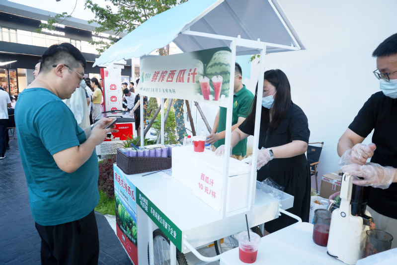 6月29日,“苏超”联赛焦点战——南通队对阵宿迁队的较量火热打响,苏锡通园区枫叶小镇奥特莱斯“第二现场”化身一片欢乐海洋。场内,巨幕大屏实时捕捉着赛场每一寸风云变幻,将攻防转换的紧张刺激清晰投射;场外,摊车次第铺开,循着光影轨迹驶入童话的美食王国。南通公司顺势借“苏超”赛事的火热东风,特别推出农场直供的鲜榨西瓜汁——炎炎夏日里,这份冰爽与甘甜恰似一剂及时的“救赎”。捧起西瓜汁猛灌一口,带着沙沙绵密口感的清甜瞬间漫过舌尖,将积攒整日的燥热涤荡一空。赛事开始后,现场气氛愈发沸腾,数千人流交织着欢声与笑语,鲜榨西瓜汁也顺势迎来了销售热潮。当晚9时,所有鲜榨西瓜汁便销售一空。杯盏间的余味里,那一份清爽甘洌陪伴着意犹未尽的旅客,将赛事热情延续到深夜。